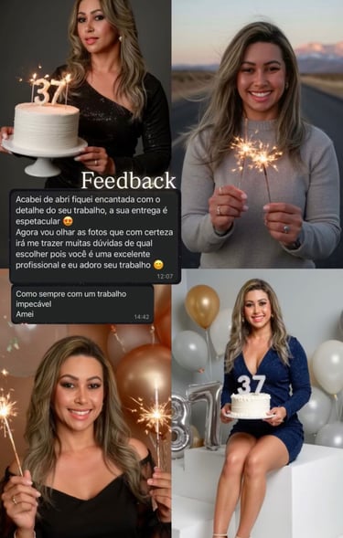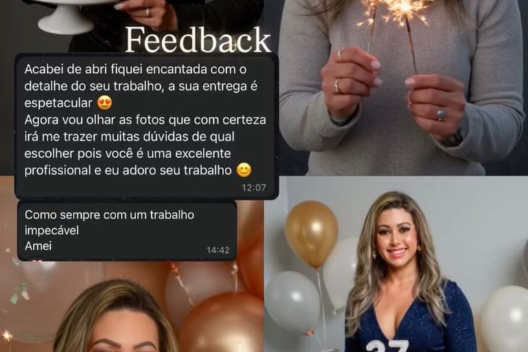 Celebração: Eternize o seu aniversário ou um marco especial com fotografias dignas de uma revista.